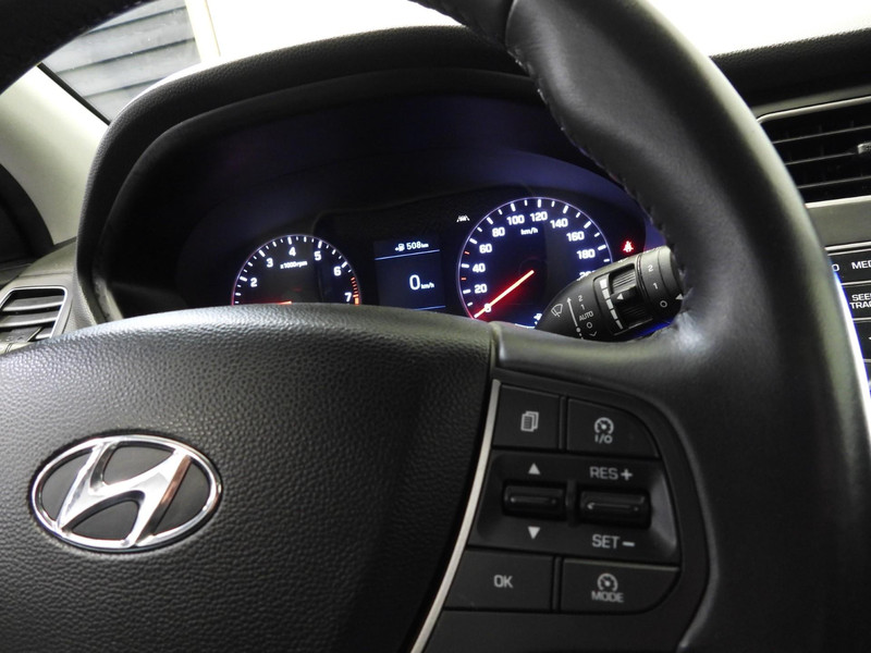De achteruitrijcamera vergemakkelijkt achteruit inparkeren. U ziet duidelijk wat er achter de auto gebeurt. Het is veiliger om altijd uw ogen op de weg te houden en uw handen aan het stuur; daarom is dit voertuig uitgerust met een audio-installatiesysteem met DAB-ontvangst en een full map navigatiesysteem dat kan worden bediend via het stuurwiel of spraakbediening. De sensoren van de achteropkomend verkeer waarschuwing registreren wat er gebeurt in de dode hoeken en achter u. U krijgt meteen een waarschuwing als u een achterligger over het hoofd ziet. Tot de standaard uitrusting van deze auto hoort ook climate control. Om de veiligheid onderweg te verhogen, heeft deze Hyundai zowel een automatisch inschakelbare verlichting als een regensensor aan boord, zodat hij zelf de verlichting en de ruitenwissers kan inschakelen. Wat u ook in deze auto kunt vinden zijn cruise control, keyless entry, automatisch dimmende binnenspiegel, isofix-aansluiting, centrale deurvergrendeling met afstandsbediening en boordcomputer.