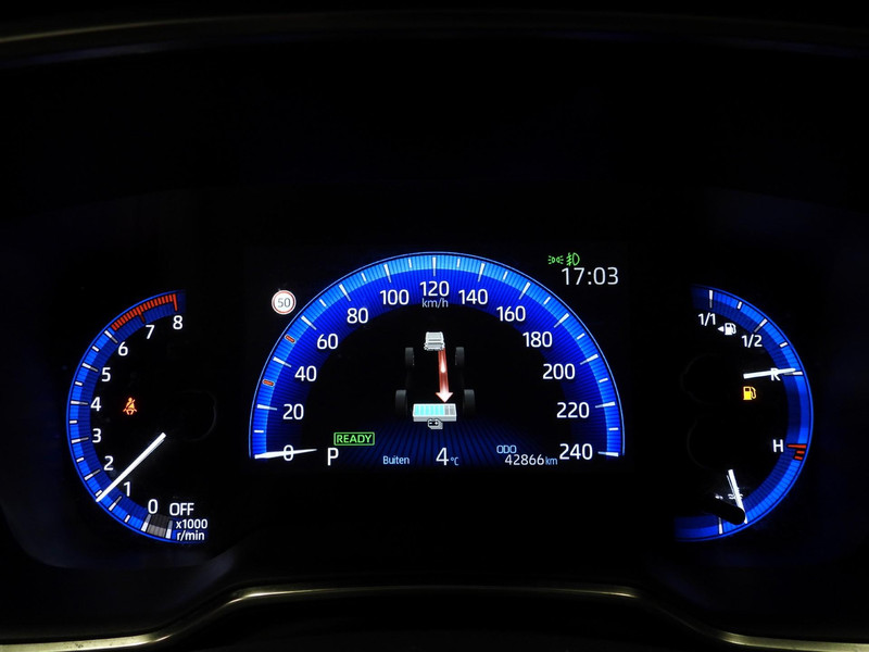 Het digitale dashboard stelt u in staat uw cockpitinterface te personaliseren. Afstand schatten bij het achteruitrijden? Niet nodig. U weet het precies, dankzij de achteruitrijcamera. Adaptive cruise control houdt de ingestelde snelheid vast en houdt afstand tot het voertuig voor u. Gemak dient de mens. Dankzij de spraaksturing bedient u de belangrijkste functie met uw stem. Kilometerstand? Oliepeil? Accuspanning? Allemaal te zien via de app. Overal. Altijd. Dankzij Connected Services. Ook is de Toyota uitgerust met: full map navigatiesysteem, achteropkomend verkeer waarschuwing, climate control, sportstuur met schakelpaddels, draadloos opladen en DAB ontvangst.