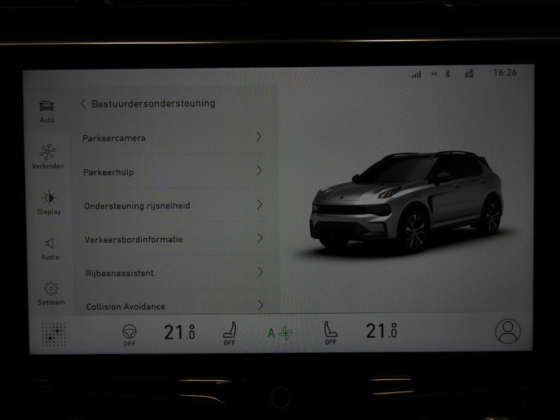 De automatische veiligheidssystemen in deze Lynk & Co fungeren als een extra paar ogen. En dat niet alleen, ze kunnen ook actief ingrijpen, om zo u en uw passagiers te beschermen. Wat deze auto ook kan, is lezen. Hij leest voor u de verkeersborden tijdens de rit en attendeert u erop door ze op het dashboard te projecteren. Het Lane-keeping systeem doet precies wat nodig is: waarschuwen en corrigeren bij onbedoelde overschrijding van de rijstrooklijnen. Onbedoeld bumperkleven is er niet bij, dankzij de forward collision warning. Die waarschuwt direct als een botsrisico met uw voorligger dreigt. Bovenop deze veiligheidsfeatures heeft deze Lynk & Co bovendien dodehoekdetectie, hill hold functie, brake assist en vermoeidheidsherkenning.