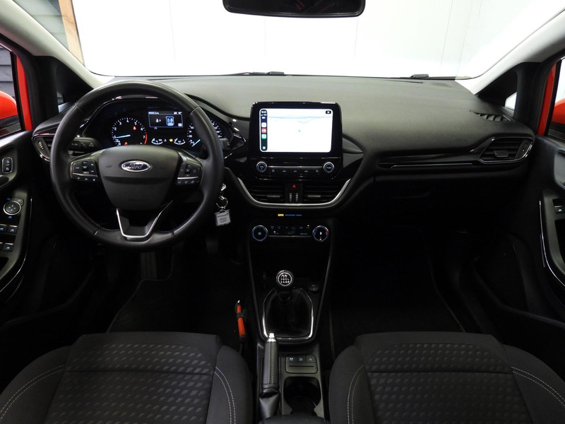 Als u m vraagt hoe gaat het? geeft deze auto zelf het antwoord. Via de app op uw smartphone. U checkt de meters waar u maar wilt, of activeert diverse functies alvast. In deze Fiesta vindt u niet alleen schakelaars op het stuur om het audiosysteem met DAB-ontvangst te bedienen, maar er is ook spraakbediening. De auto is ook uitgevoerd met climate control. Met de aanwezige parkeersensoren weet u altijd zeker of het past. Het drukke verkeer eist onderweg al uw aandacht op. Daarom is het goed dat deze Ford is voorzien van diverse systemen die u assisteren tijdens de rit. Een automatisch inschakelbare verlichting neemt het waar als het donker wordt of gaat schemeren, en schakelt dan automatisch de verlichting in. Op dezelfde manier "ziet" de regensensor de eerste spatjes regen en schakelt dan de ruitenwissers in, en als het harder gaat regenen zet hij de ruitenwissers ook in een snellere stand. Ook is de Ford uitgerust met: cruise control, automatisch dimmende binnenspiegel, isofix-aansluiting, centrale deurvergrendeling met afstandsbediening, boordcomputer en lederen versnellingspook.