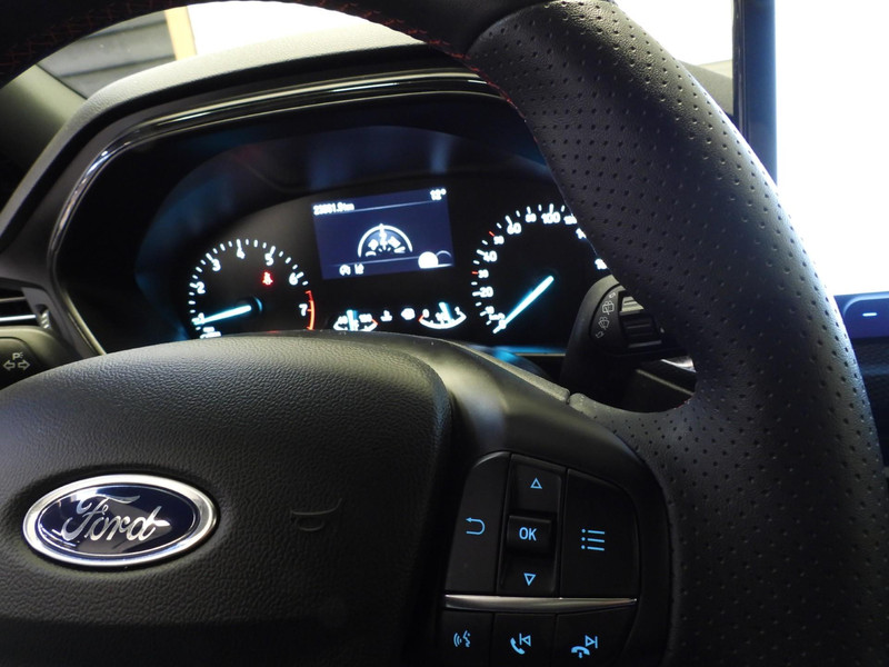 Geavanceerde technische systemen houden tijdens elke rit het verkeer in de gaten en reageren op potentieel gevaarlijke situaties. In het instrumentarium laat de verkeersborddetectie de actuele verkeersborden zien. Een camera houdt de juiste koers binnen de rijstrook in de gaten en het Lane-keeping systeem corrigeert bij afwijkingen. Onbedoeld bumperkleven is er niet bij, dankzij de forward collision warning. Die waarschuwt direct als een botsrisico met uw voorligger dreigt. Bovenop deze veiligheidsfeatures heeft deze Ford bovendien dodehoekdetectie, hill hold functie, brake assist, vermoeidheidsherkenning en bandenspanningcontrolesysteem.