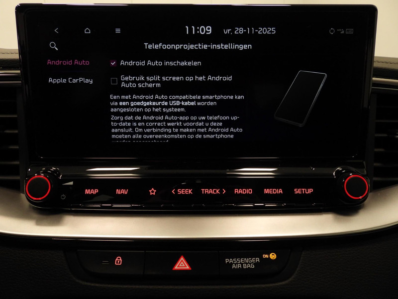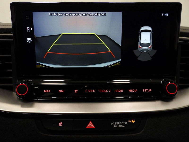 Met behulp van de achteruitrijcamera kunt u zo strak inparkeren als u maar wilt! U bedient het full map navigatiesysteem en het audio-installatiesysteem met DAB-radio via knoppen op het stuur, of zelfs met uw stem. Zo kunt u steeds uw aandacht gericht houden op de weg. Met de climate control selecteert u de gewenste temperatuur. Het systeem doet de rest. Het drukke verkeer eist onderweg al uw aandacht op. Daarom is het goed dat deze Kia is voorzien van diverse systemen die u assisteren tijdens de rit. Een automatisch inschakelbare verlichting neemt het waar als het donker wordt of gaat schemeren, en schakelt dan automatisch de verlichting in. Op dezelfde manier "ziet" de regensensor de eerste spatjes regen en schakelt dan de ruitenwissers in, en als het harder gaat regenen zet hij de ruitenwissers ook in een snellere stand. Een heerlijke egale snelheid? Even de cruise control inschakelen! Deze auto is voorzien van keyless entry, automatisch dimmende binnenspiegel, isofix-aansluiting, centrale deurvergrendeling met afstandsbediening en lederen versnellingspook.