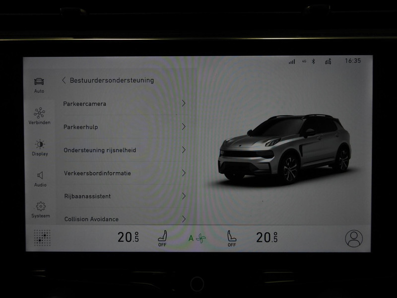 Pas de interface van uw cockpit moeiteloos aan. Het is mogelijk door het digitale dashboard in deze auto. De vier cameras genereren samen een 360 graden beeld rond de auto, zodat u een volledig overzicht hebt van wat er rondom uw auto gebeurt. Als u de adaptive cruise control inschakelt, regelt de auto zelf de snelheid en de afstand tot de auto voor u. Na een lange werkdag in de file: daar zit niemand op te wachten. Gelukkig helpt de file assistent een handje. Het radarsysteem meet de ruimte tot de voorligger en bewaakt de juiste afstand. Stilstaan? Dan remt en stopt de auto vanzelf. Het high performance audiosysteem staat garant voor een levendige en krachtige muziekweergave. Deze Lynk & Co is voorzien van dashboard met spraakbediening, full map navigatiesysteem, achteropkomend verkeer waarschuwing, climate control, audiobediening op het stuur en draadloos opladen.