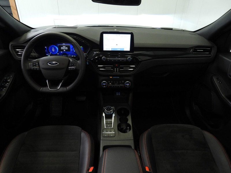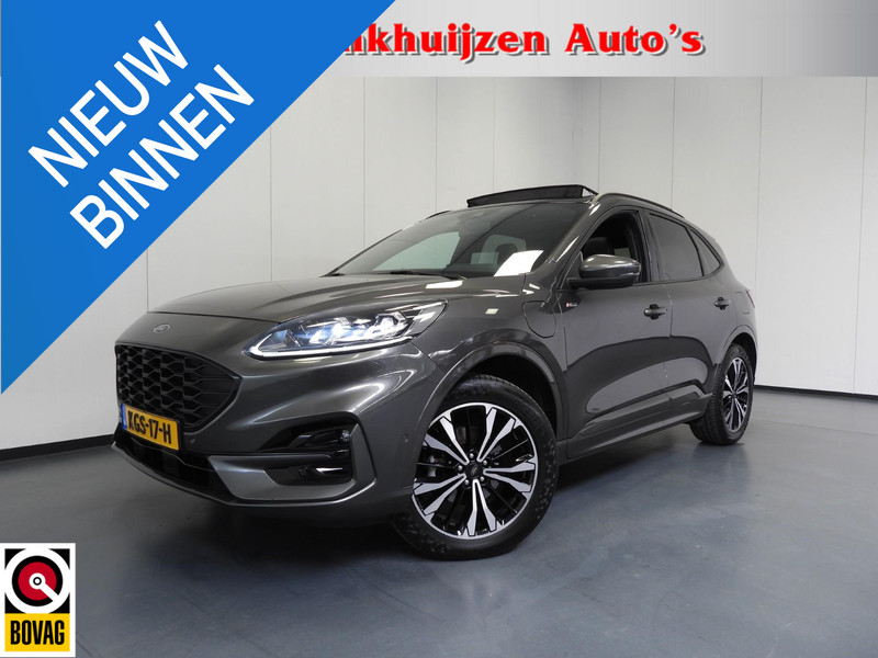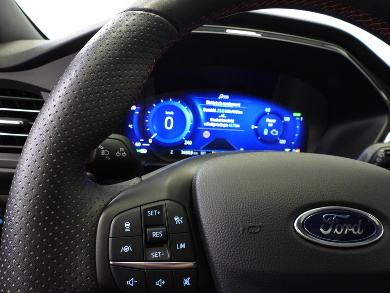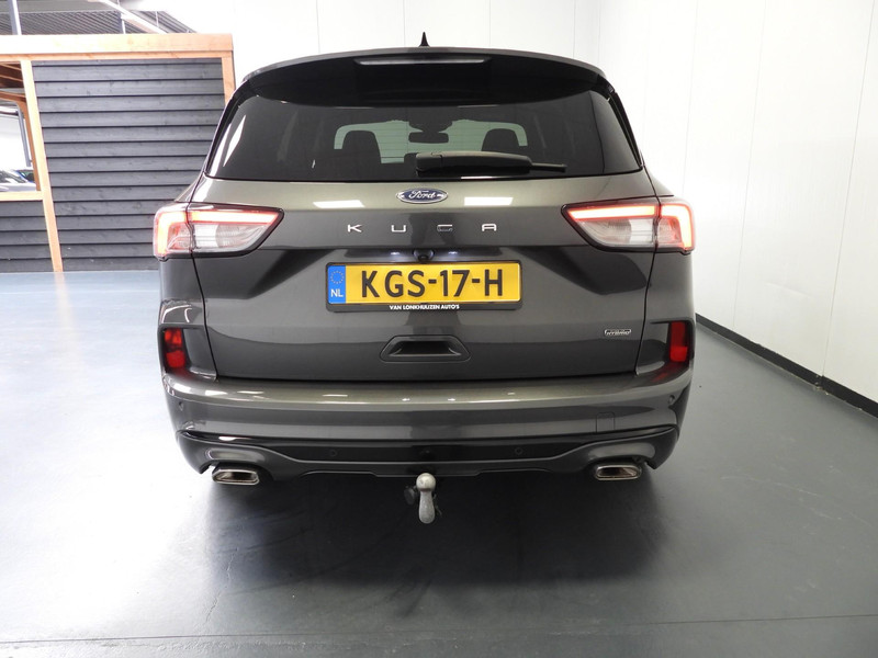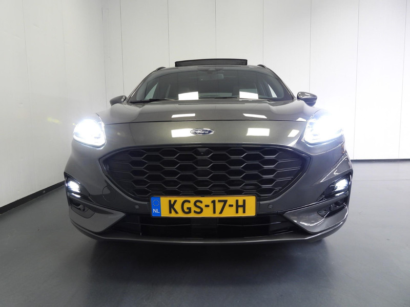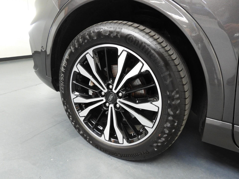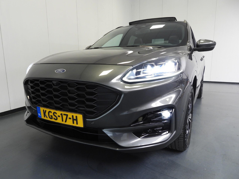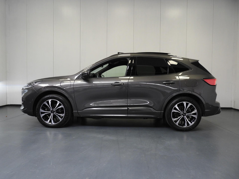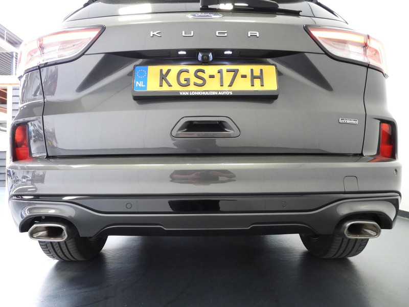 Soepel rijgedrag, een krachtige acceleratie en een laag brandstofverbruik, de hybride Ford Kuga is een innovatieve auto. De toekomst is hybride: de combi van elektromotor en verbrandingsmotor maakt deze auto extra aantrekkelijk en voordelig in gebruik. Daglicht valt vrij binnen door het elektrisch bediende glazen panorama dak. Wat ook met één klik opent, is de elektrisch bedienbare achterklep. In dit voertuig hoeft u nooit meer kou te lijden dankzij functies als stoelverwarming en verwarmbare achterbank, evenals een verwarmbaar stuur. In het interieur domineren de sportstoelen, die er niet alleen stijlvol uitzien, maar die u ook optimaal ondersteunen tijdens de rit. Tot de uitrusting van deze Ford behoren ook 19 inch lichtmetalen velgen, LED koplampen, sportonderstel, geluidsisolerende ramen, in delen neerklapbare achterbank en LED-achterlichten.