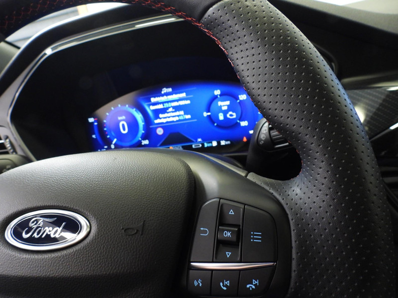 De intelligente veiligheidssystemen in deze auto waken continu over uw veiligheid. Jachtvliegers weten het al jaren: belangrijke info projecteer je in je zichtveld zodat je je hoofd niet meer hoeft te draaien. De hier aanwezige head-up display doet precies hetzelfde! Tijdens de rit hebt u altijd een bijrijder, want de verkeersbord-detectie leest de borden langs de weg en projecteert ze voor u op het instrumentarium. Het Lane-keeping systeem zorgt voor een automatisch constante positie binnen de rijstrook. Afdwalen is uitgesloten. Bovenop deze veiligheidsfeatures heeft deze Ford bovendien dodehoekdetectie, forward collision warning system, hill hold functie, vermoeidheidsherkenning, autonoom remsysteem en bandenspanningcontrolesysteem.