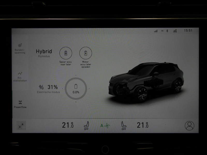 Dat u het milieu wilt sparen, wil nog niet zeggen dat u aan rijcomfort moet inleveren. De Lynk & Co 01 is een comfortabele en ruime hybride auto. Op de teller van deze auto staat slechts 237 kilometer. Rijden op brandstof én elektriciteit? Dat kan, met de hybride motor van deze Lynk & Co 01. De elektromotor ondersteunt of neemt het deels over van de brandstofmotor als dat uitkomt. Scheelt lekker in de kosten! Een beetje luxe is nooit weg, toch? Vandaar de stoelverwarming! De achterklep opent automatisch met een druk op de knop. Handig als u met volle handen staat. Het glazen panoramadak geeft u een ongekende rijsensatie: wat een licht en zicht! In deze auto profiteert u onder andere ook van: 20 inch lichtmetalen velgen, LED koplampen, zwarte hemelbekleding, dakspoiler, extra getint glas en in delen neerklapbare achterbank.