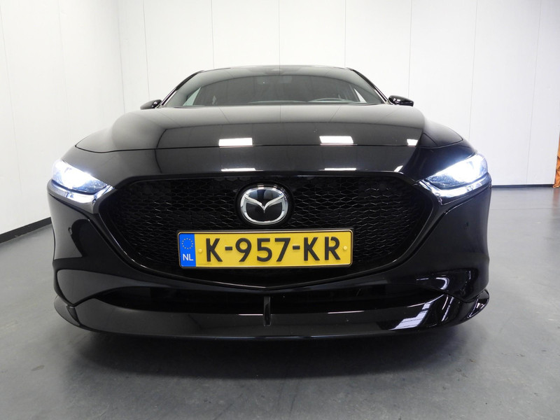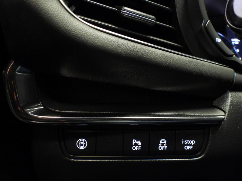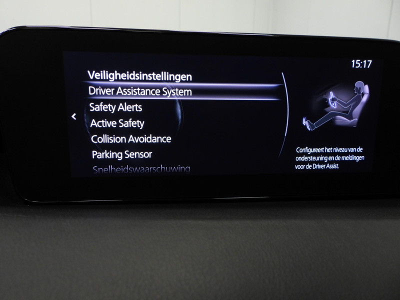 Pragmatisch en veilig als deze auto is, beschikt hij over diverse veiligheidssystemen. Dat de auto steeds meer taken van de bestuurder overneemt, merkt u bijvoorbeeld aan het systeem voor verkeersbord-detectie in deze Mazda. Deze Mazda 3 is ook behulpzaam als het gaat om een rechte koers. Het Lane-keeping systeem signaleert en corrigeert als u onbedoeld de rijstrooklijnen dreigt te overschrijden. Kop-staartbotsingen vormen een belangrijk deel van de meest voorkomende aanrijdingen. De forward collision warning van deze auto voorkomt zulke botsingen geheel of reduceert de ernst van de schade aanzienlijk. In deze Mazda vinden we verder een head-up display, dodehoekdetectie, hill hold functie, brake assist, vermoeidheidsherkenning en bandenspanningcontrolesysteem.