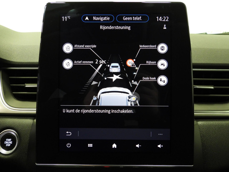 Zoals u mag verwachten van deze Renault Captur is hij uitgerust met een reeks aan actieve veiligheidssystemen. In het instrumentarium ziet u tijdens de rit ook de belangrijkste verkeersborden aangegeven, die de auto automatisch voor u leest. Voorzien van het Lane-keeping systeem. Ofwel: blijf automatisch in je baan. Botsingen met een voorligger gebeuren relatief vaak. De forward collision warning slaat tijdig alarm als dat risico ontstaat, zodat u kunt ingrijpen. Ook helpen het dodehoekdetectie, hill hold functie, brake assist en bandenspanningcontrolesysteem, uw rit tot een veilige rit te maken.