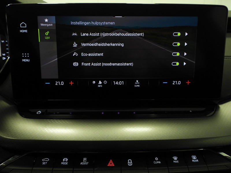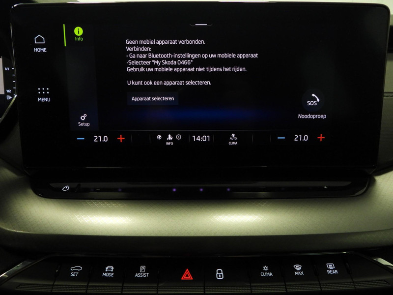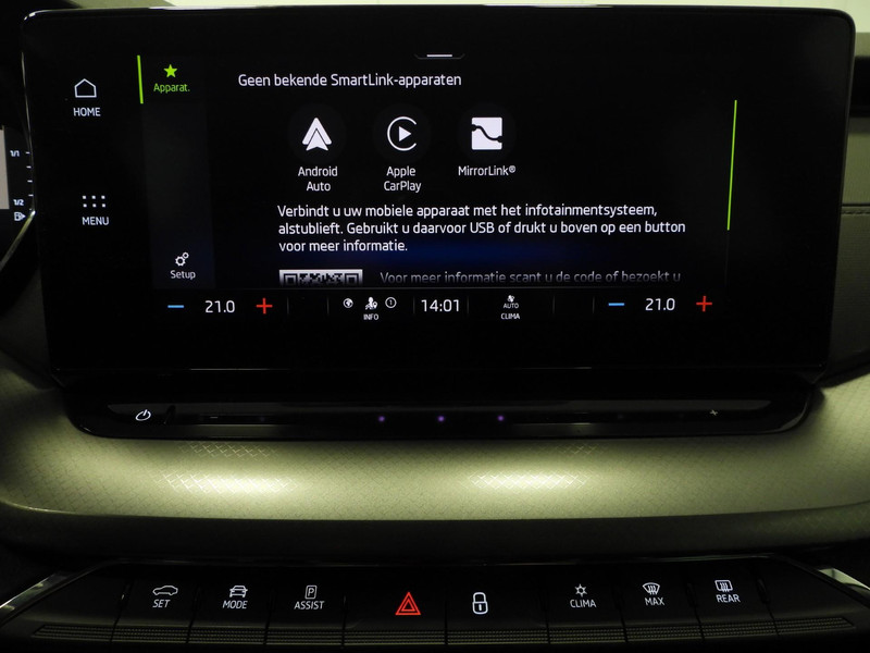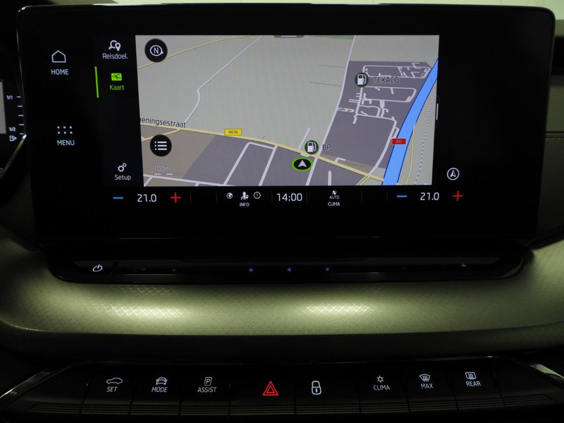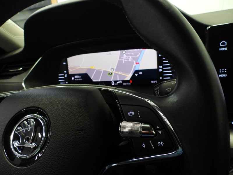Overzicht, informatie en functionaliteit: dat biedt het digitale dashboard. De meest gebruikte voertuigfuncties laten zich met behulp van uw stem bedienen. De elektrisch inklapbare trekhaak maakt een einde aan ingewikkelde handelingen. Waar u zelf ook bent, u staat altijd in contact met de auto via de app op uw smartphone. Zo controleert u uiteenlopende functies, ook op afstand. U rijdt snel, zuinig en zeker naar uw bestemming met het full map navigatiesysteem. De uitrusting van deze Skoda is met climate control, audiobediening op het stuur, draadloos opladen, DAB ontvangst, parkeersensoren achter en regensensor behoorlijk compleet.