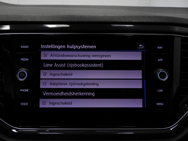 Zoals u mag verwachten van deze Volkswagen T-Roc is hij uitgerust met een reeks aan actieve veiligheidssystemen. Onbedoeld buiten de rijstrook raken wordt voorkomen door het Lane-keeping systeem. Het forward collision warning-systeem berekent via een sensor de afstand tot het verkeer vóór u en komt in actie als er gevaar bestaat van een botsing. Vermoeid achter het stuur zitten vergroot de kans op een ongeval. Vermoeidheidsherkenning waarschuwt tijdig als u aan een rustpauze toe bent. De auto is ook uitgerust met hill hold functie, autonoom remsysteem en bandenspanningcontrolesysteem.